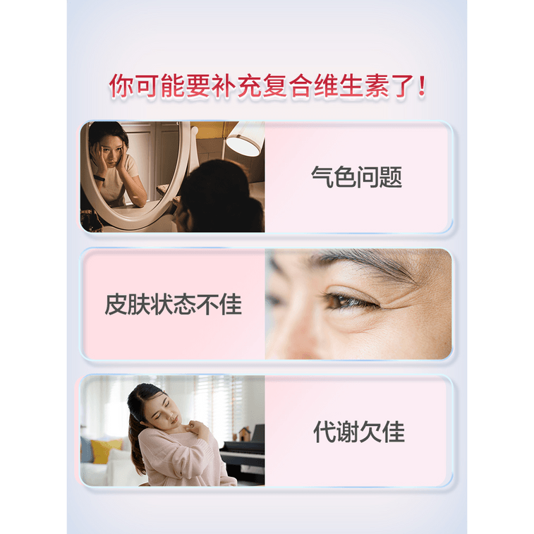 [중국에서 직접 우편] By-Health 멀티비타민 B 컴플렉스 VCE 칼슘 정제 엽산 철분 보충제 153g*1 병