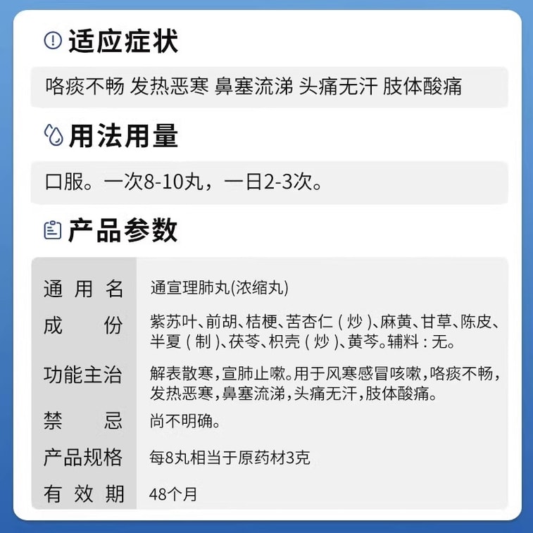 [중국 직송] 감기, 기침, 재채기, 콧물, 코막힘, 발열, 두통, 오한에 효과적인 타이지 통쉬안 라이프이 정제(농축) (64정/박스)