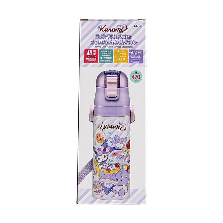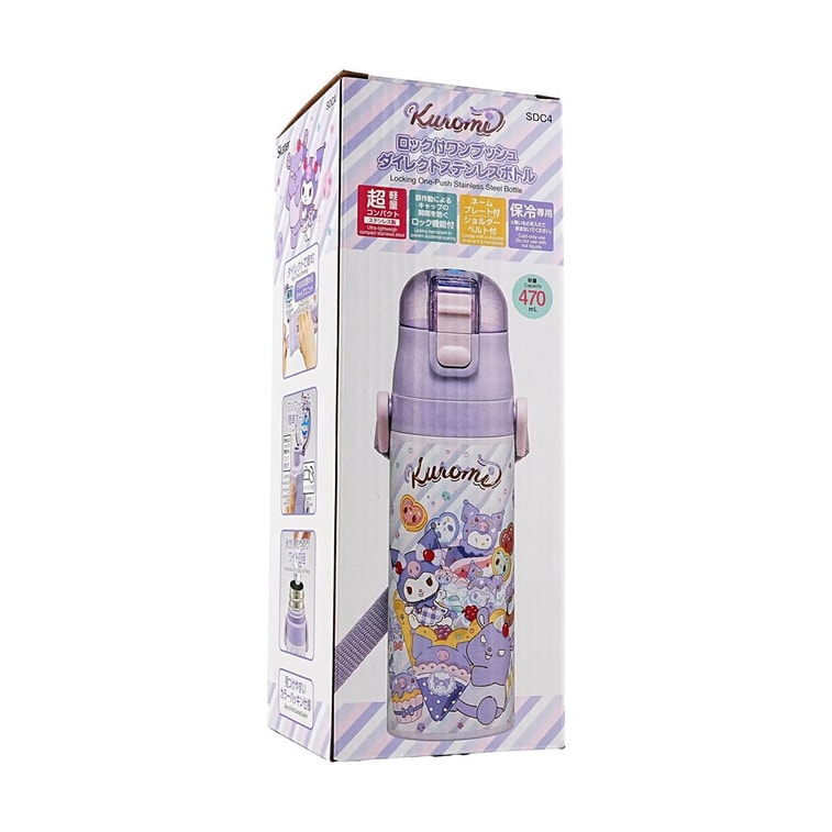 스케이터 초경량 & 컴팩트 원터치 잠금 방식 스테인리스 스틸 직음용 물병 – 쿠로미 팬시 스낵 스위츠 | Yami