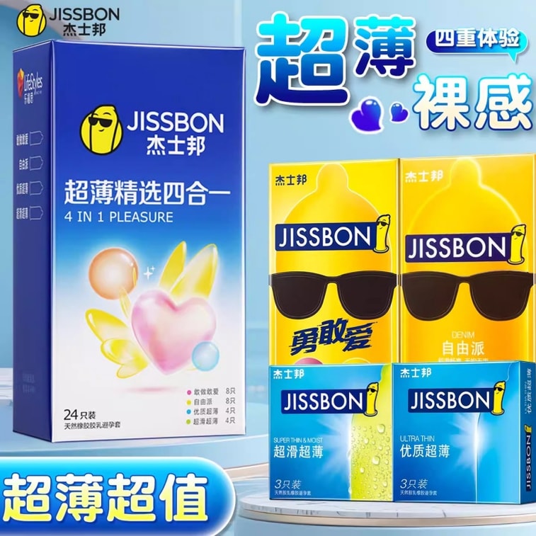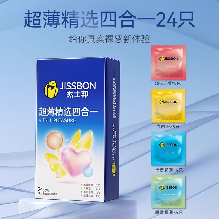 [중국 직배송] 지스본 클래식 4-in-1 콘돔, 오래 지속되는 지연 콘돔, 초박형 돌기, 다양한 경험, 최고의 즐거움을 선사하는 24개입 성인용품