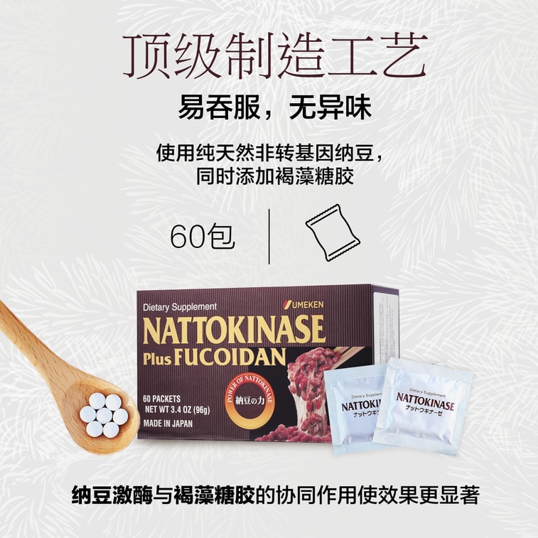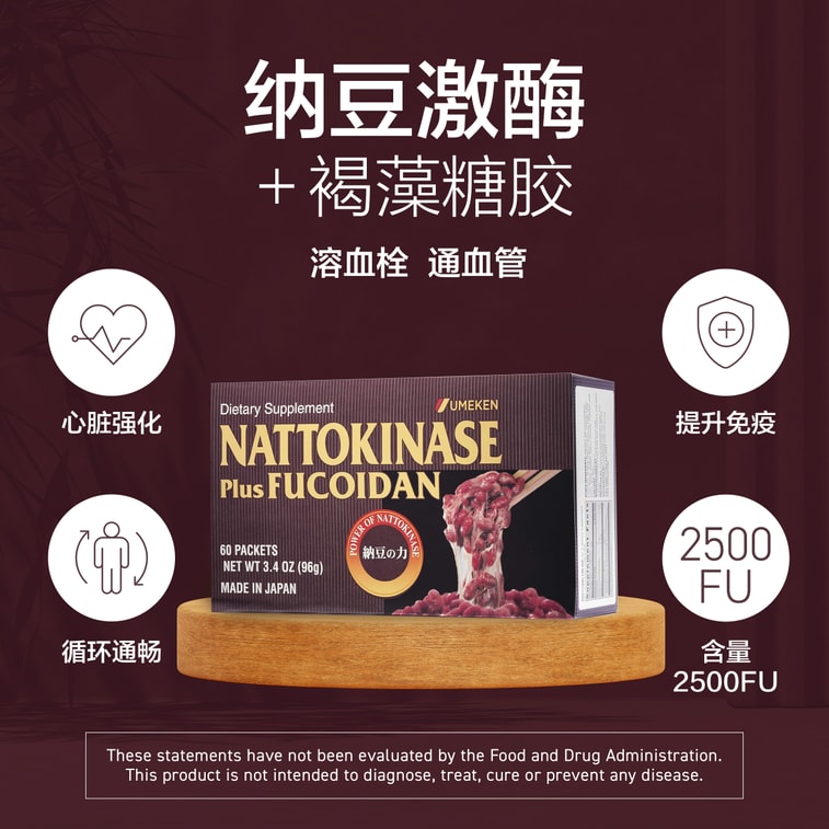 [일본산] 우메켄 나토키나제(후코이단 첨가) 96g [강력한 혈관 청소를 위한 2500FU] [심장과 뇌를 보호하는 혈전 용해 작용] [뇌졸중 예방에 필수] [혈압, 혈당, 콜레스테롤 수치 개선] [중장년층의 일상 혈액 순환 관리 필수품]