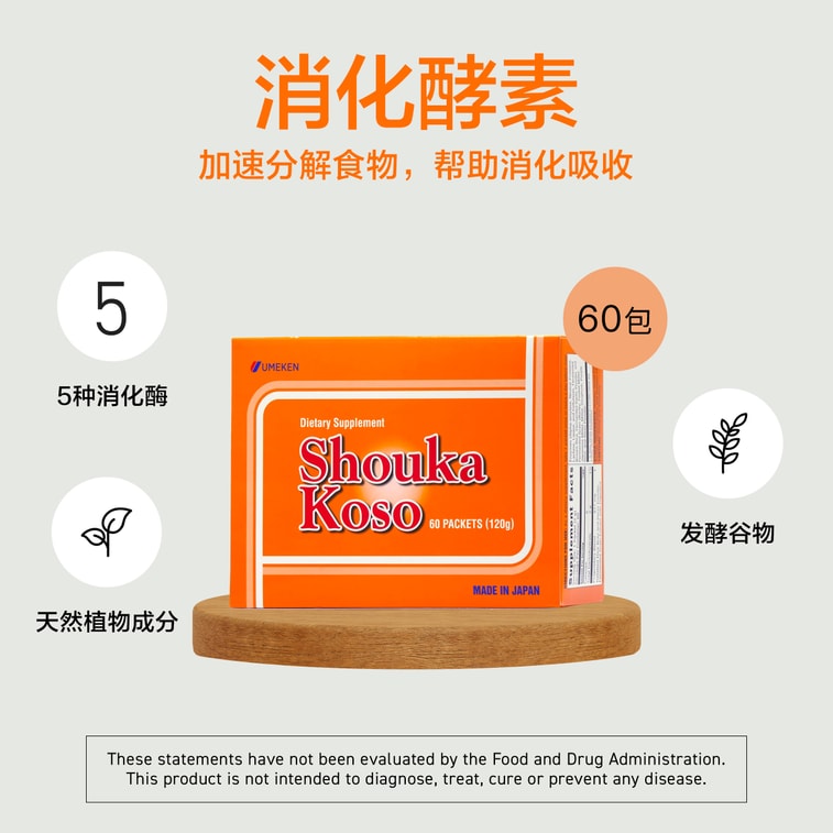 [일본산] 우메켄 소화 효소 60포 [5가지 소화 효소가 함께 작용하여 🤝과식, 복부 팽만감은 이제 그만✨] [식후 복부 팽만감, 위산 역류, 식욕 부진? 한 포로 간편하게 해결하세요. 복부 팽만감 없이 소화를 도와 매끼 안심하고 드세요!]