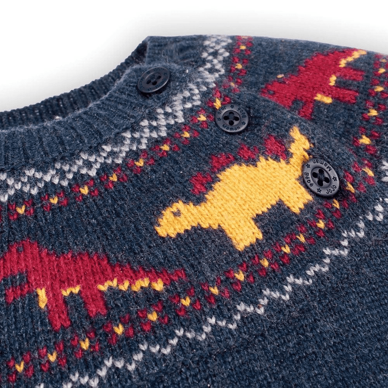 MOM LOVES ME 어린이용 네이비 공룡 페어 아일 스웨터 (2-3세)