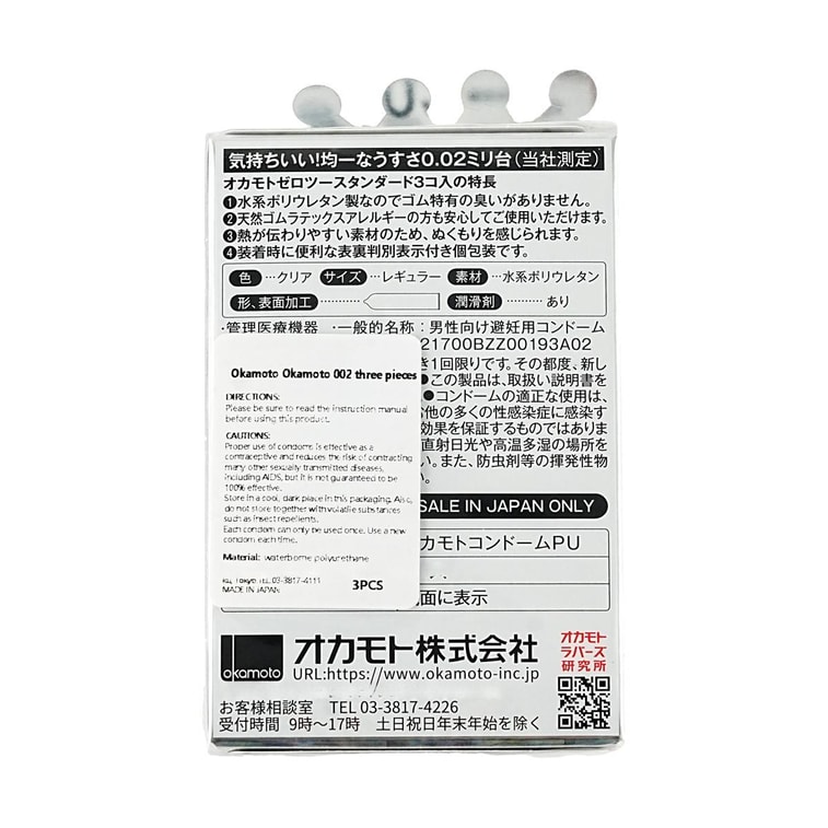 002 초박형 엑셀런트 EX 폴리우레탄 콘돔 3개입【일본어 버전】
