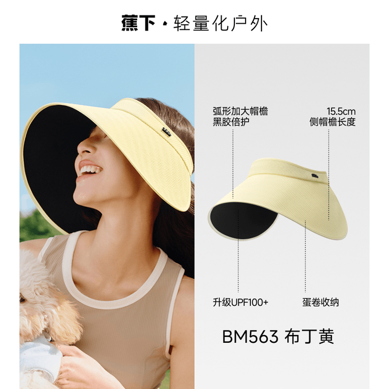 바나나 BM563 풀페이스 선햇(푸딩 옐로우) 큰 챙, 속이 빈 윗부분, 통기성, 자외선 차단(UPF 100+), 접이식