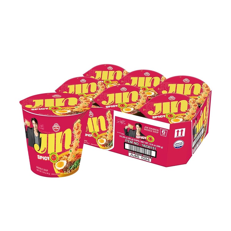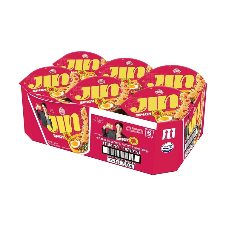 진라면 - 한국식 인스턴트 컵라면, 매운맛, 2.29oz*6팩【밸류팩】【방탄소년단 진】【아미】