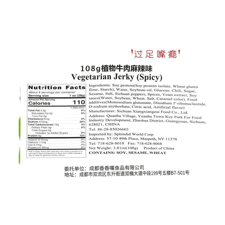 채식 저키 스파이시, 3.81온스