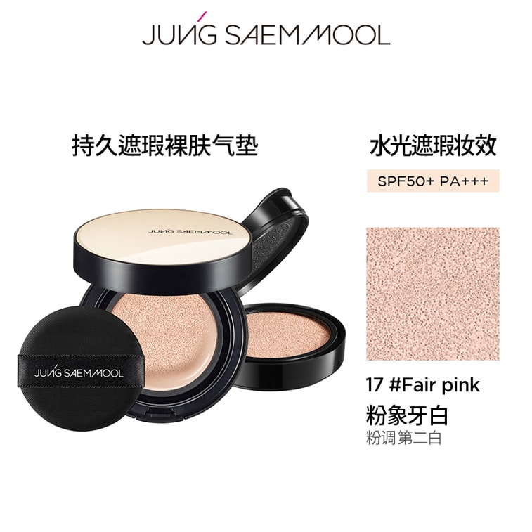 [한국 직배송] 정샘물 롱래스팅 라이트웨이트 누드스킨 쿠션 파운데이션 크림, 그리디쿠션 선스크린 비비크림, 워터글로우 버전 SPF50+ PA+++ 14g*2, 리필 1개 포함 #17 페어핑크 아이보리 화이트
