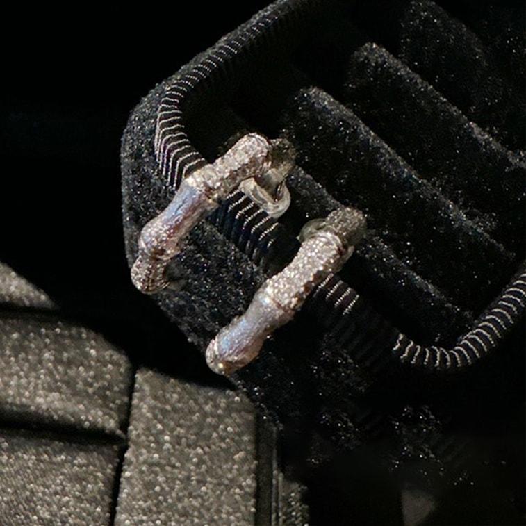 [중국 직배송] HSPM 빈티지 럭셔리 보석 상감 후프 귀걸이, 화이트 골드 도금 브러시드 대나무 모양 지르코니아 귀걸이, 1쌍