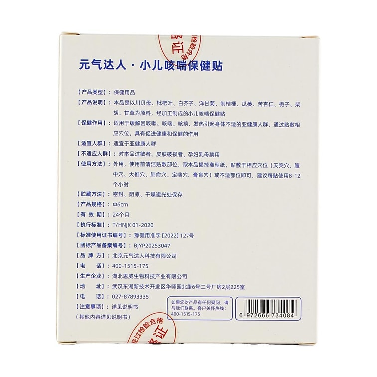 원치 다렌(활력 전문가) 건강 승인 소아용 기침 및 천명 패치, 10매