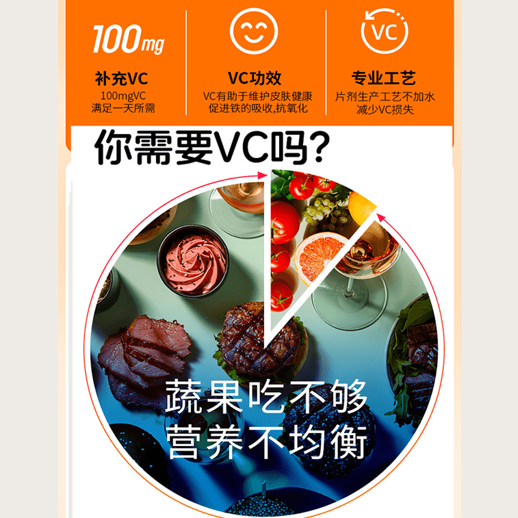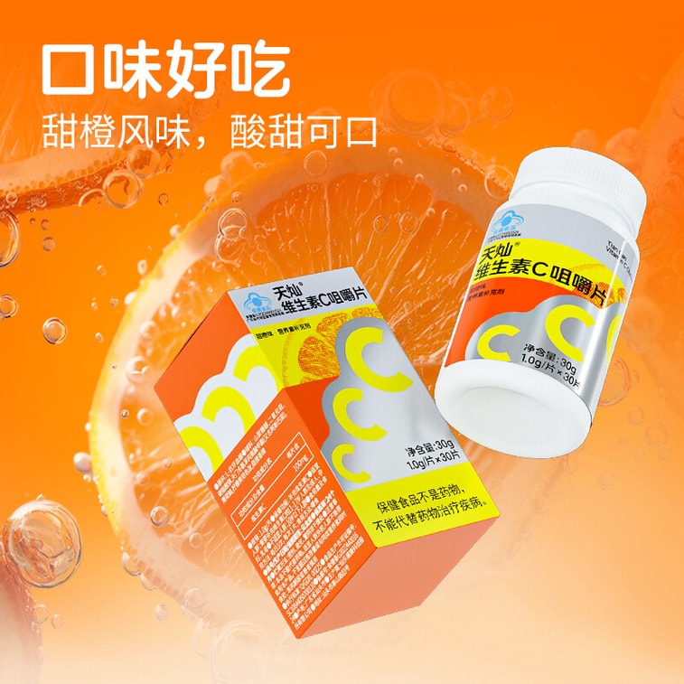 Vitamin C Chewable Tablets 30 g - 100mg Orange Flavor for Adults Pair with Niacinamide