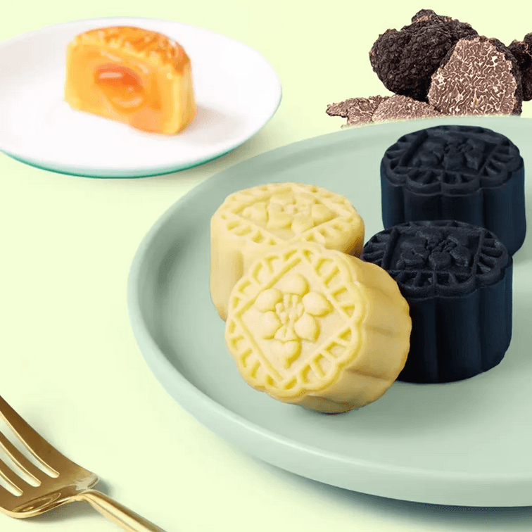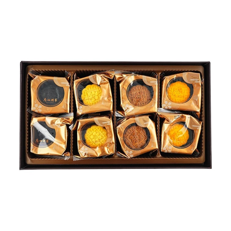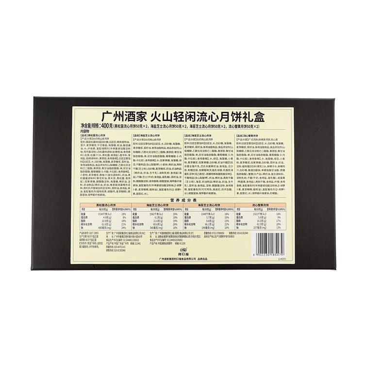 화산 용암 월병 선물 상자, 8개입 14.1oz – 블랙 트러플, 바다 소금 치즈, 해초 치즈, 게알 용암 필링