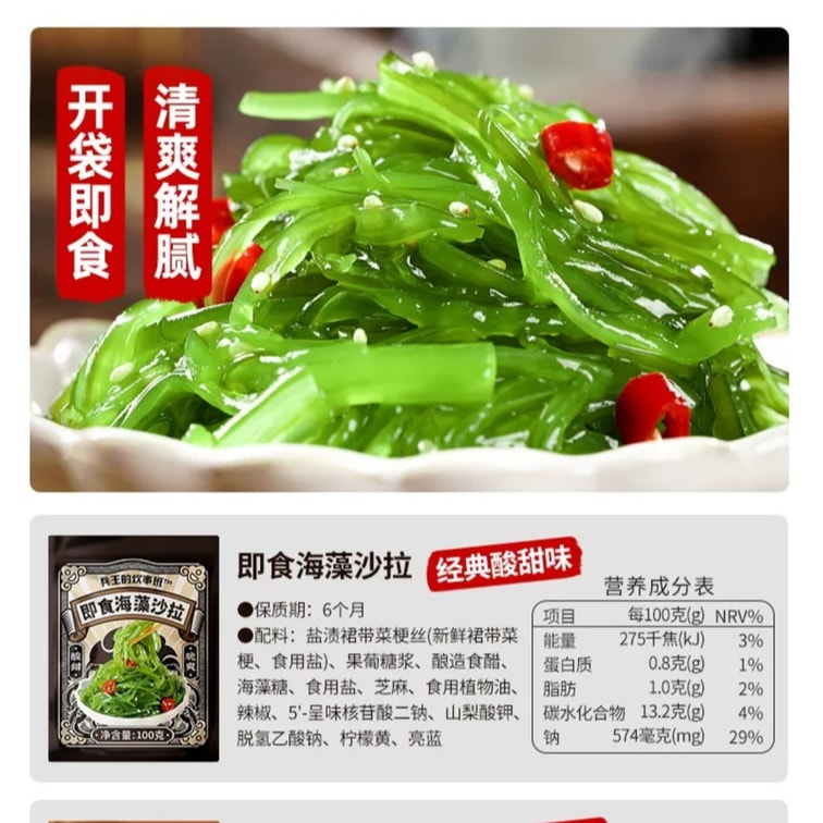 Wakame shredded seaweed salad is ready to eat out of the bag Sweet and sour cold salad 100g*1 bag