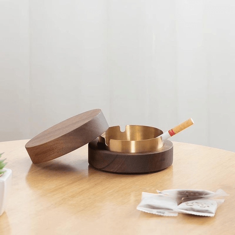 [중국 직배송] 난산 호두나무 재떨이, 뚜껑이 있어 재가 떨어지는 것을 방지하는 가정용 거실 재떨이, 트렌디한 장식용 재떨이, 블랙, 4.6*10.3cm*1개입