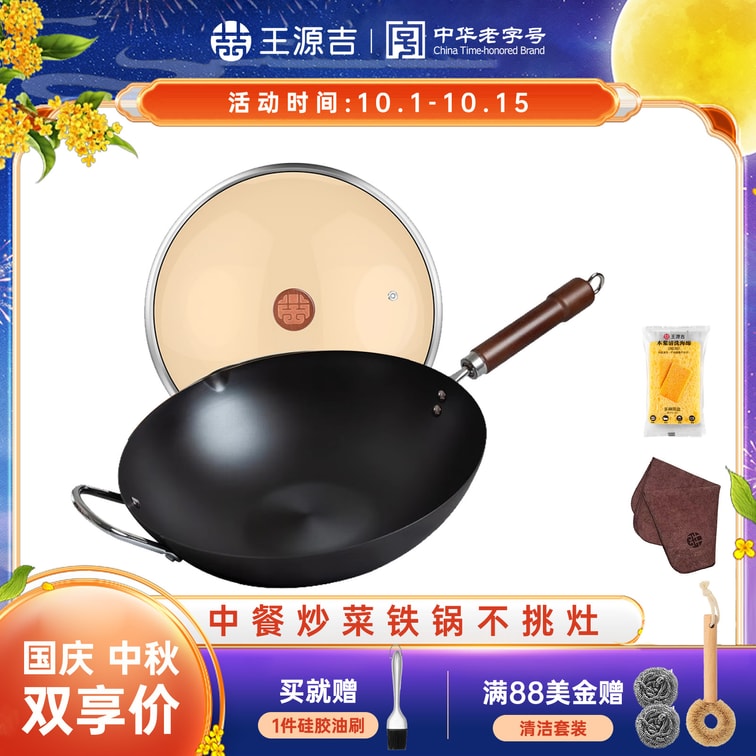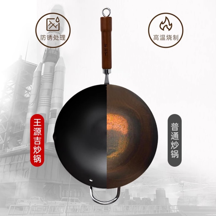 ⭐입문형 모델⭐ [타임리스 클래식, 더욱 향긋한 볶음] 왕위안지 32cm 무광 고급 무쇠 웍. 대구경, 녹슬지 않음! 3-5인용 추천