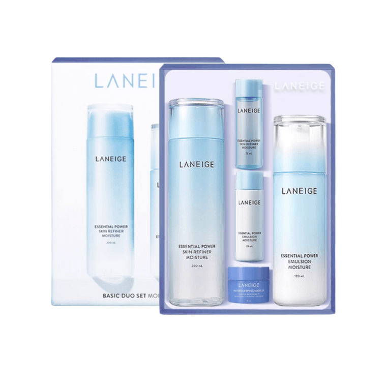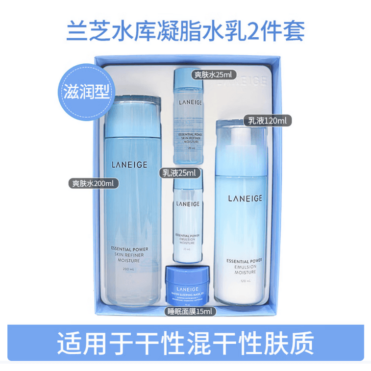 [홍콩 직배송] 라네즈 코리아 아쿠아소스 스킨케어 세트 (토너 200ml + 에멀전 120ml) + 동일 토너, 에멀전, 크림 샘플 증정 + 슬리핑 마스크. 수분 공급, 보습, 안티에이징 효과. [풍부한 포뮬러]