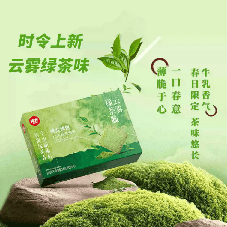 [중국 직배송] 웨이롱 클라우드 미스트 녹차맛 얇고 바삭한 비스킷, 개별 포장, 작은 패킷, 180g x 1 상자
