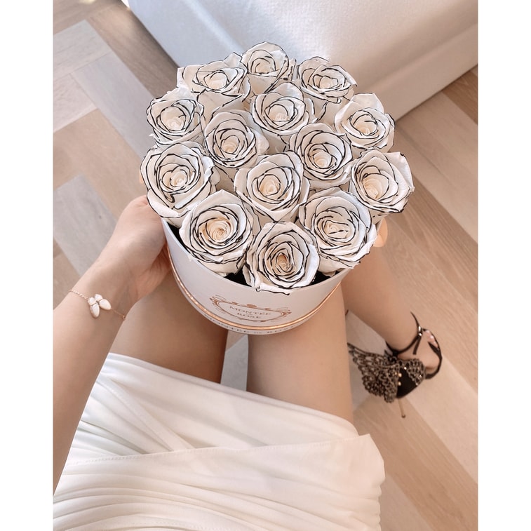 [미국에서 온 다이렉트 메일] 클래식 미디엄 화이트 라운드 블랙 펄 로즈 박스