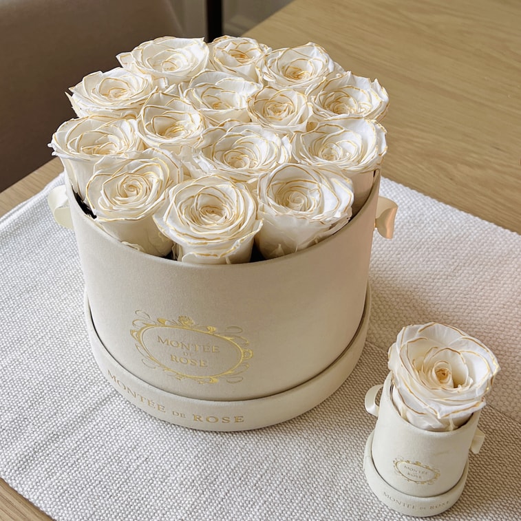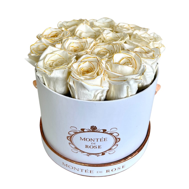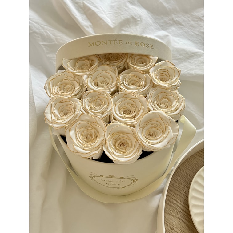 [미국에서 온 다이렉트 메일] 클래식 미디엄 화이트 라운드 골드 펄 로즈 플라워 박스
