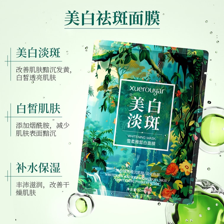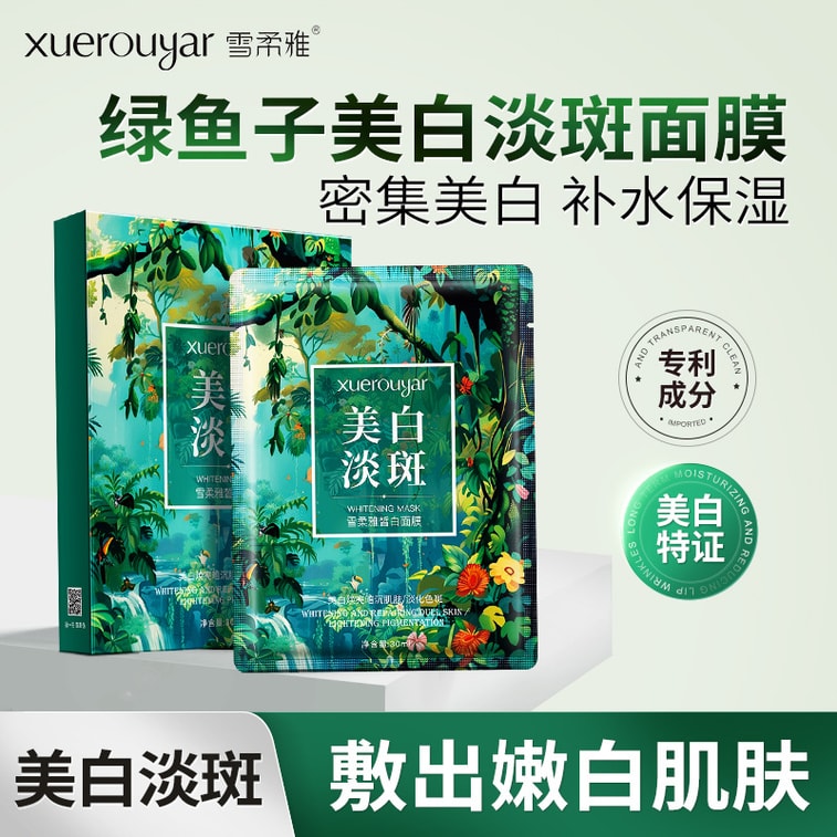 Xuerouyar [판빙빙의 세임 스타일] 그린 캐비어 화이트닝 & 스팟 리무빙 마스크, 수분 공급 및 보습 니아신아마이드 스팟 리무빙 마스크 (5매/박스)