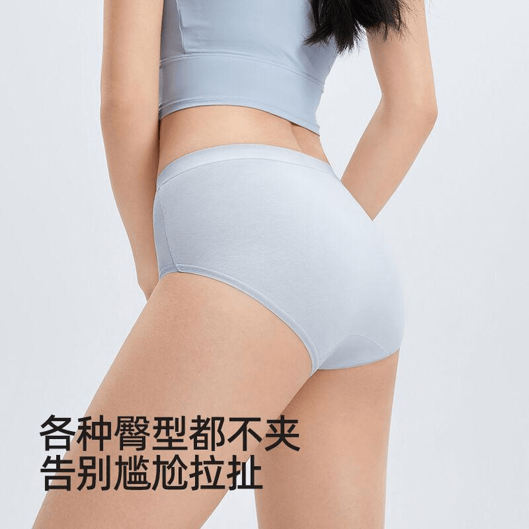 해피 코튼 라이트 블루 사이즈 M 여성용 팬티, 순면 10A 항균, 긴 가랑이, 새로운 스타일, 통기성, 심리스, 미드웨스트 트라이앵글 반바지