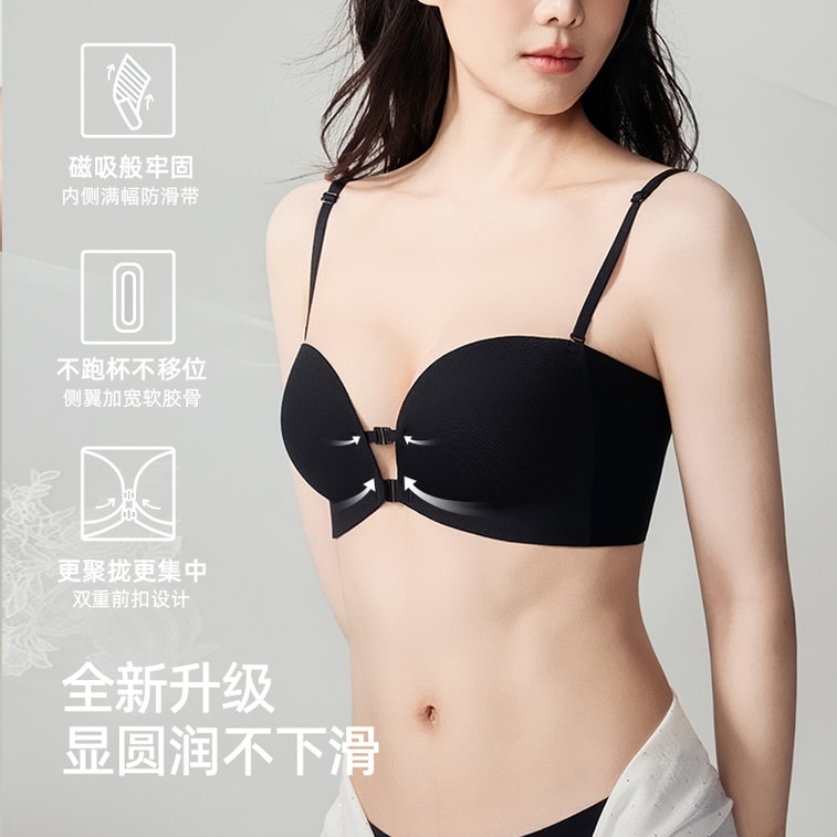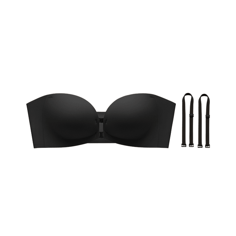 여성용 Lucky Cotton 블랙 S 사이즈 프론트 클로저 스트랩리스 브라, 미끄럼 방지, 푸쉬업, 작은 가슴, 보이지 않음, 아름다운 등, 작은 가슴을 더 크게 보이게 함