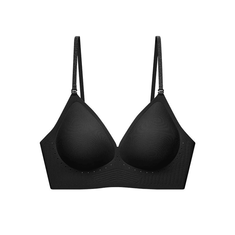 럭키 코튼 플러스 사이즈 블랙 브라, M 사이즈, 심리스 백리스, 푸쉬업, U자형 홀터넥, 투명 파운데이션, 얇은 스트랩, 여성 속옷