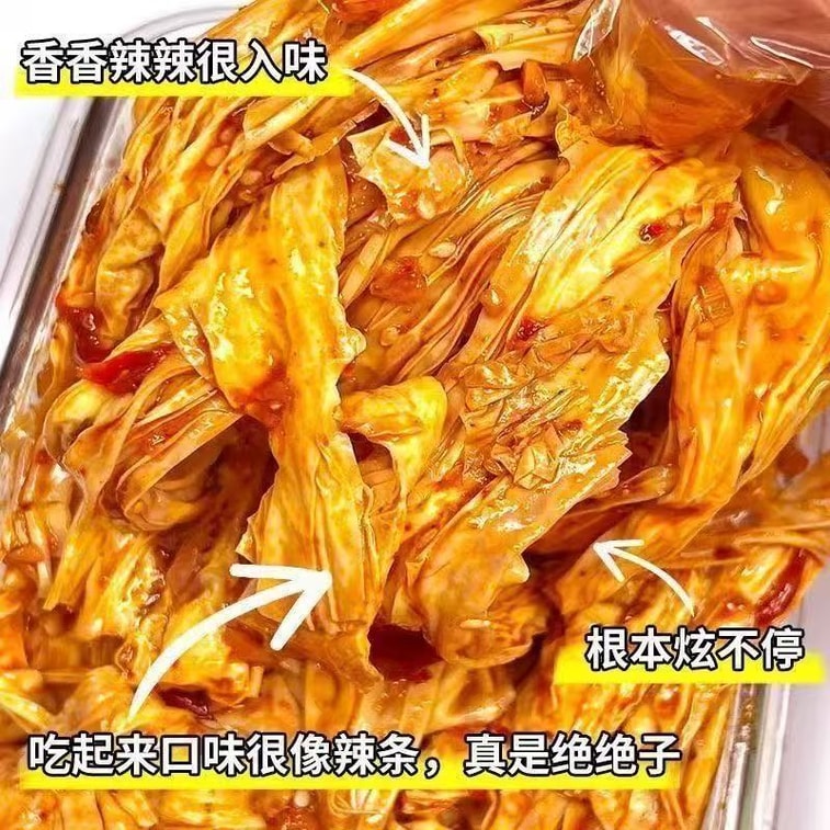 후난식 특제 소스 레시피를 사용하여 두부피를 먼저 양념에 재운 후 골고루 섞어 소스가 듬뿍 배도록 합니다. 고추기름과 참깨를 입혀 후난 요리 특유의 매콤한 풍미를 그대로 재현했습니다. 한 입 베어 무는 순간 신선하고 매콤하며 풍미 가득한 맛과 쫄깃하면서도 부드러운 식감이 마치 갓 찐 두부를 맛보는 듯한 느낌을 선사합니다. 풍부한 식감과 맛은 일반 매운맛 스낵보다 만족감을 더하고, 찜 요리보다 더욱 산뜻한 맛을 자랑합니다.