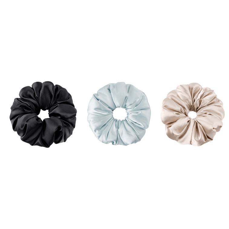 [시링] 새틴 쉬폰 헤어타이 3색 조합 블랙+블루+샴페인 고급 슬리핑 헤어타이 미끄럼 방지, 끊어짐 방지, 머리카락 손상 방지, 메이크업 없는 여성을 위한 필수품