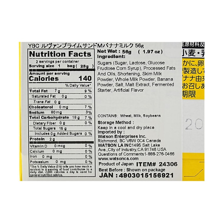 YBC 르방 프라임 샌드위치 바나나 우유 1.97온스 | Yami