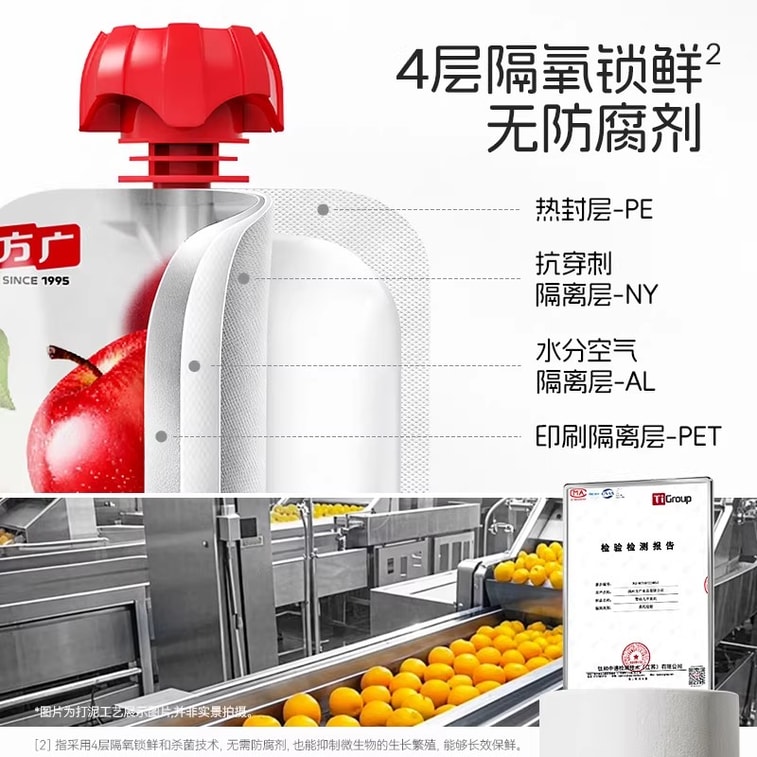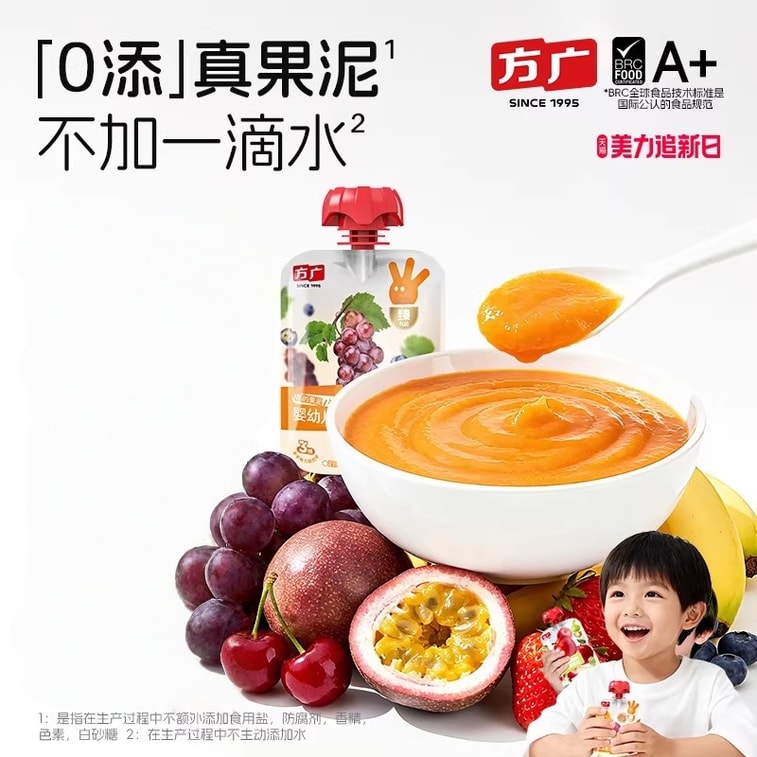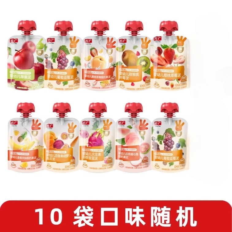 [중국 직배송] 팡광 베이비 라벨 유아용 과일 퓨레 (6개월 이상) - 영양 가득한 과일 및 채소 혼합, 무첨가 음료, 800g [80g/봉지 * 10봉지] | Yami