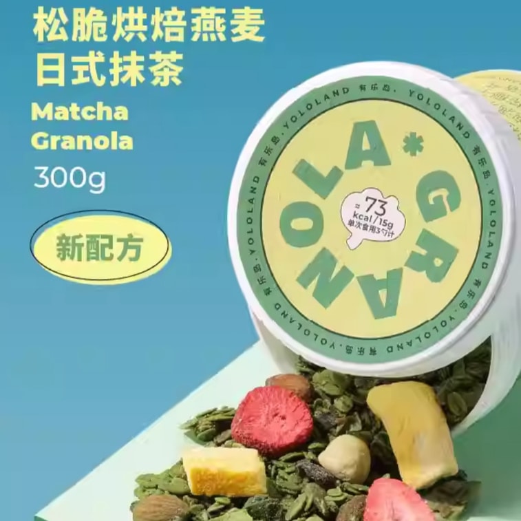 [중국 직배송] 율 아일랜드 크리스피 베이크드 오트밀 (일본산 말차와 큼직한 견과류 함유), 신선한 말차 향, 300g*1캔