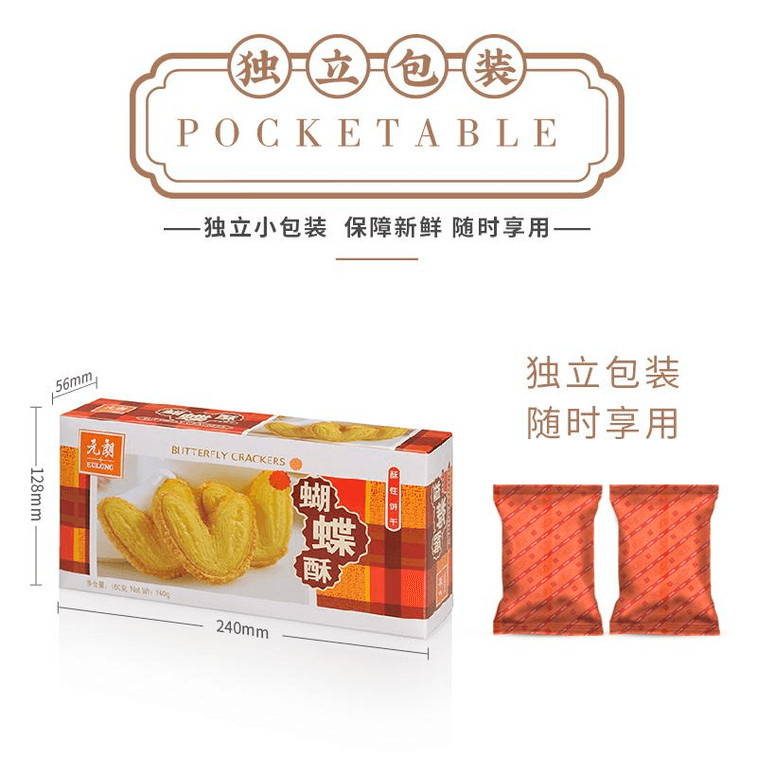 [중국발 다이렉트 메일] 위엔롱 나비 밀푀유 쿠키 개별포장 특제 과자 설날과자 160g*1박스 | Yami