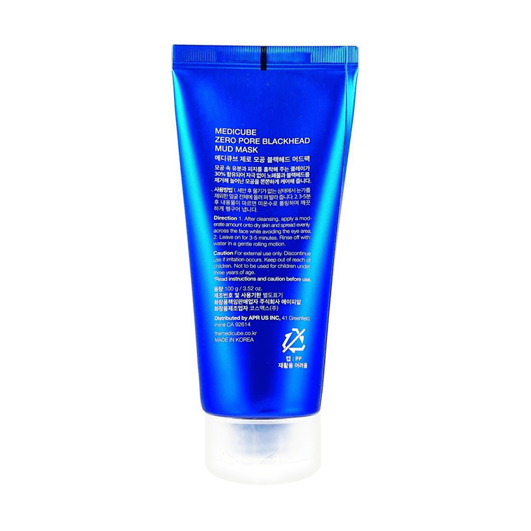제로 포어 블랙헤드 머드 마스크, 100ml - 피지 조절 및 모공 수축 | 진정 및 쿨링 효과 | 딥 클렌징