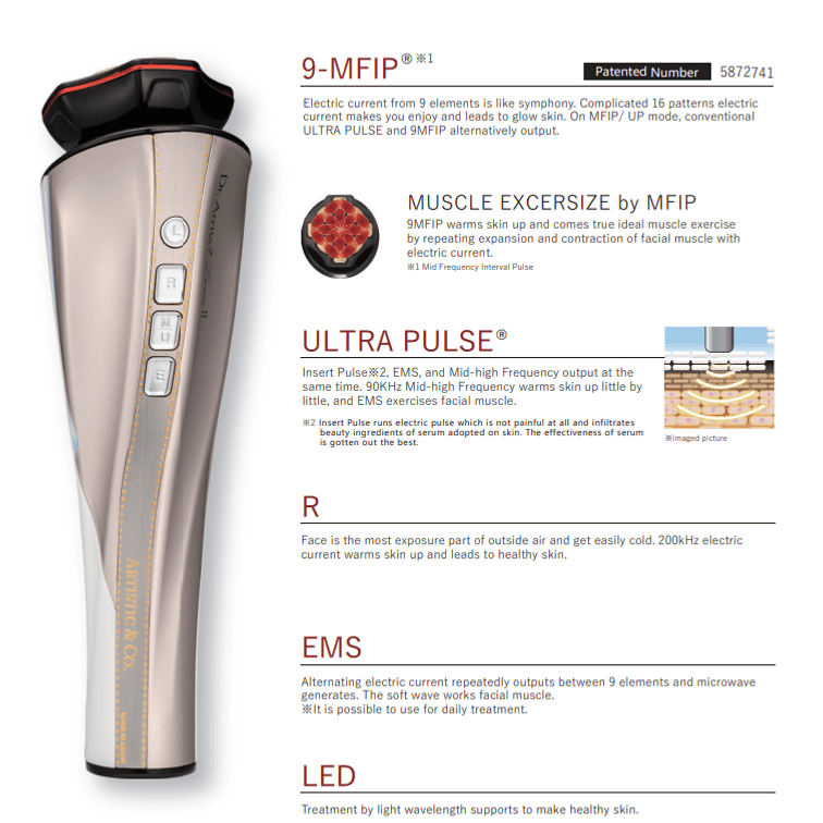 💎브랜드의 특허받은 Ultra Pulse 및 MFIP 기술과 다양한 최첨단 노화 방지 기술을 결합한 Dr Arrivo The Zeus II는 혈액 순환과 림프 배수를 촉진합니다.