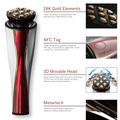 ✨자유롭게 움직이는 3D 헤드와 9개의 전극이 모든 방향으로 움직이며 얼굴의 곡선에 꼭 맞으며 피부의 모든 세포에 효과적으로 영향을 주어 통증이 없고 비침습적인 효과를 제공합니다. - 피부와 친화력이 좋은 캐럿 골드.