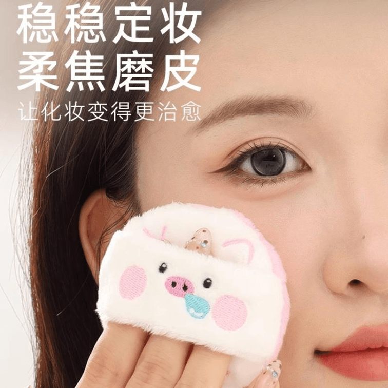 [중국 직배송] 궈샤오뉴 동물원 털보 파우더 프레스드 파우더 세팅 파우더 도구, 귀여운 곰 대형 털보 파우더 퍼프, 7.2*7.2cm*1개