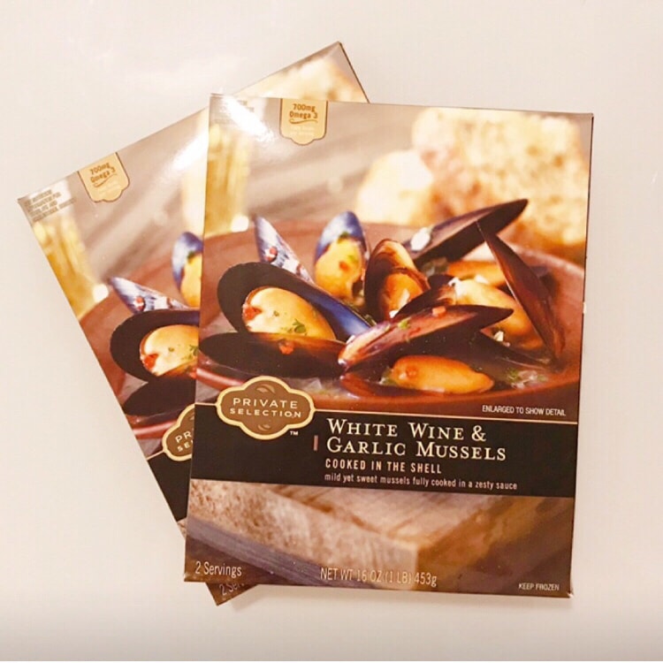 I didn't expect to see this special offer on white wine and garlic mussels, 2 boxes of $5, so I bought it and tried it!