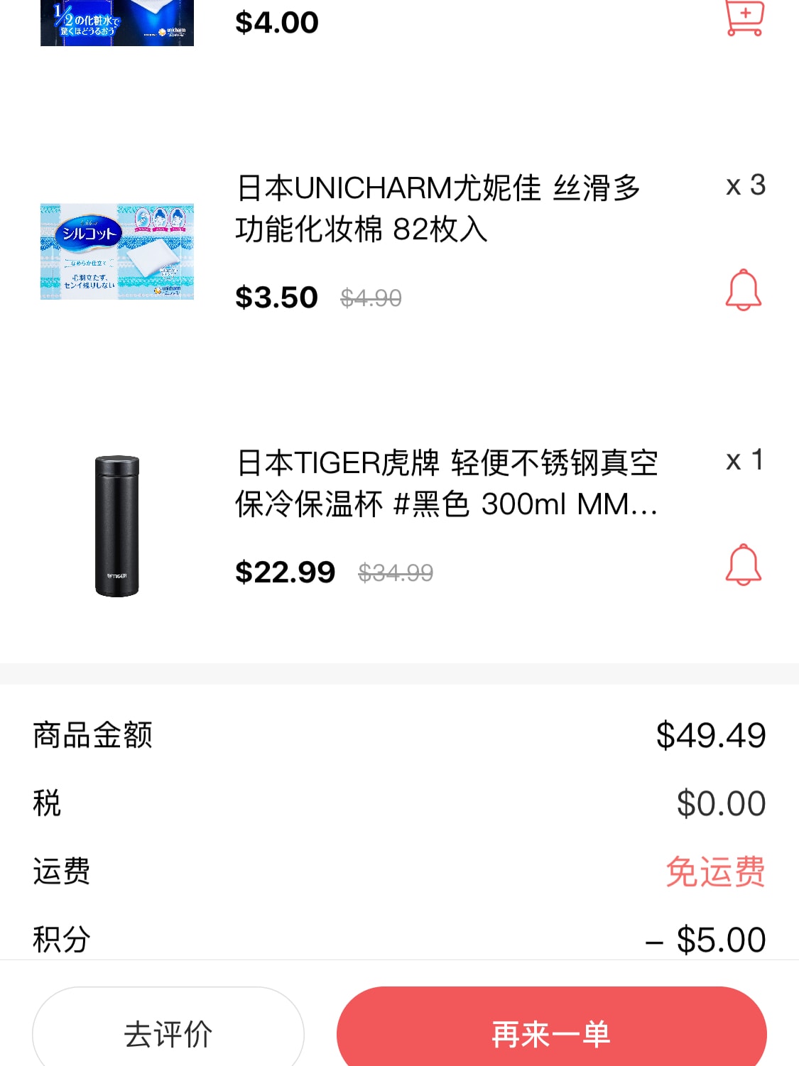 买了好几盒化妆棉,还有一个保温杯,打折时候买的,积分还可以抵扣,下单之后送到巨快,意外的惊喜!
