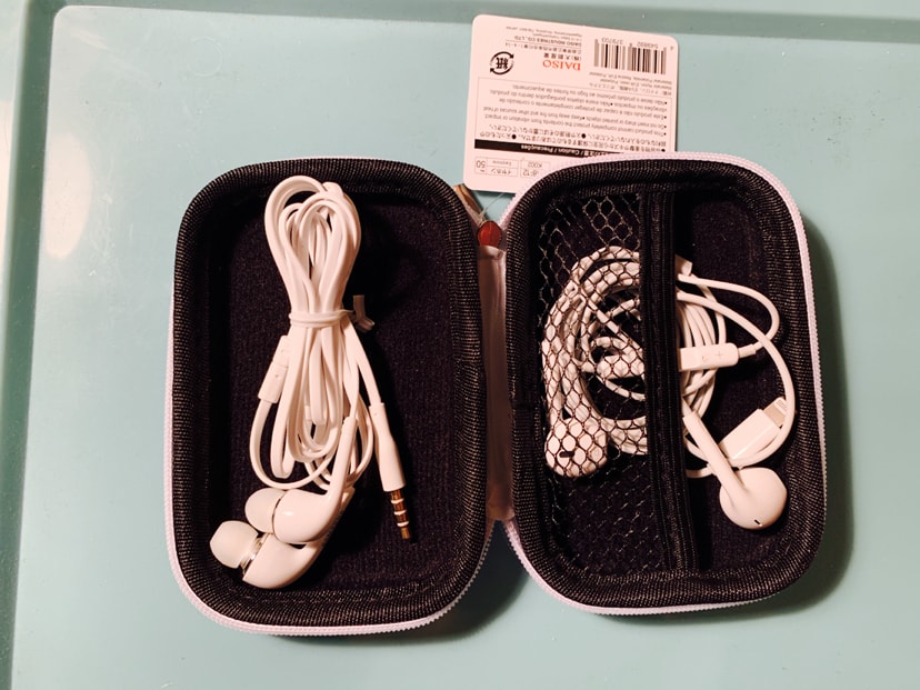 Fortunately, I found this enlarged headphone bag in daiso. It is two-thirds larger than the ordinary earphone bag, and it is not particularly large. The best point is that there is a net in the cover on one side, which can fix a pair of earphones, and the earphones on the other side can be used even if they are not tied, anyway, they will not be mixed together ✌️