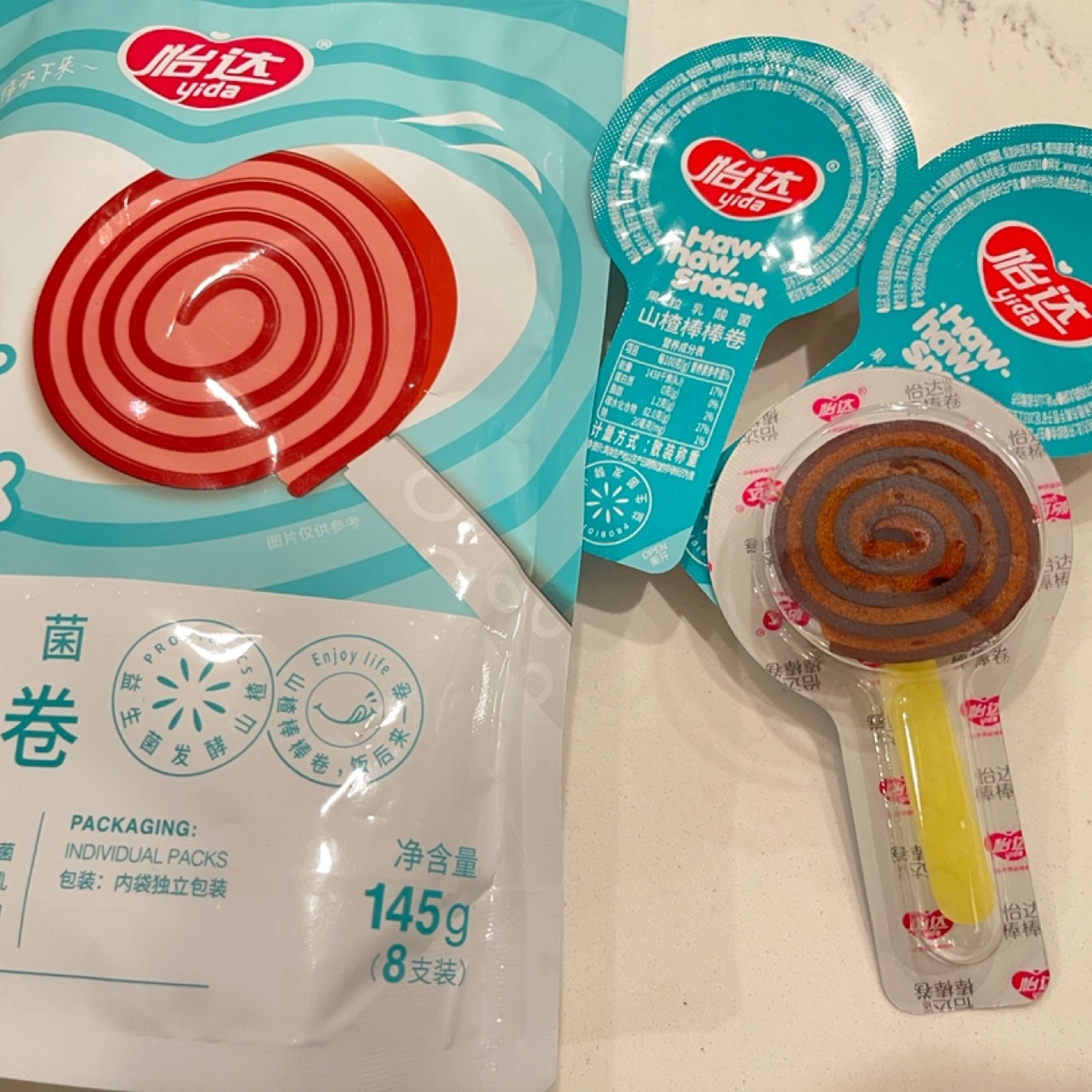 # BlackFriYay! # 2⃣️ Yida Lactobacillus Hawthorn Roll. This is my after-meal snack when I overeat. This product contains eight pieces and each one of them is individually packaged. Each hawthorn roll is designed like a lollipop; it is not very sweet or sour . It is pretty tasty and addictive sometimes. Another reason the product is a plus is that it is endorsed by Sean Xiao (Xiao Zhan).