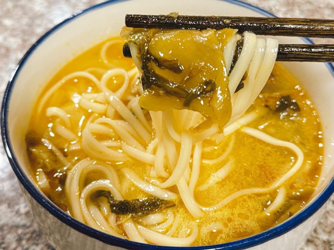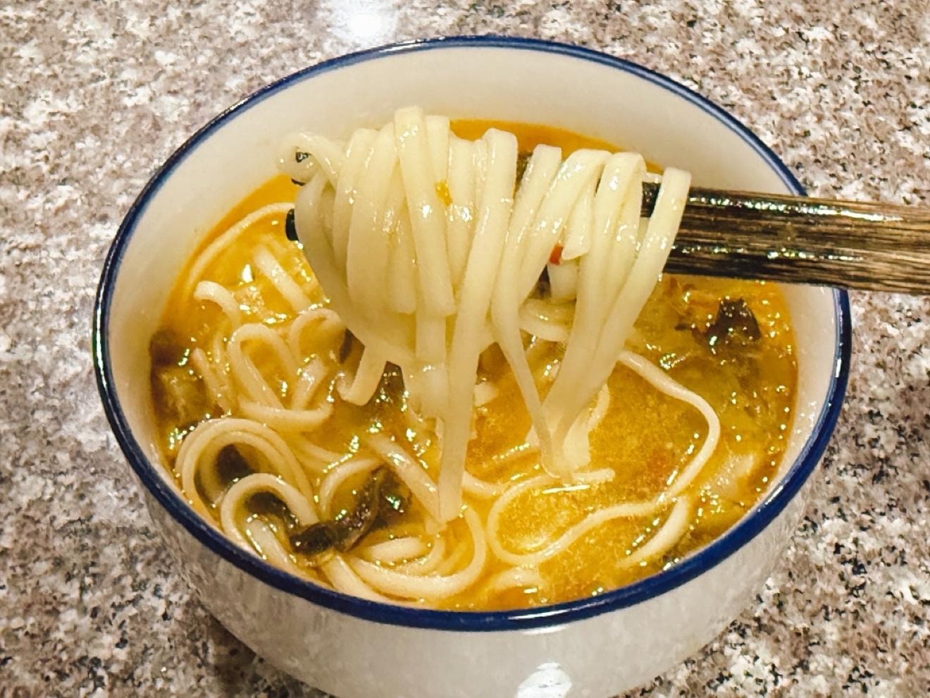太二家的酸菜金汤面是我近期吃过最好吃的速食,酸辣开胃,还有大片的酸菜,超级过瘾!自己加一点卤牛肉,上海青,就是美味又健康的一餐啦!面也是粗粗厚厚的那种,十分劲道~