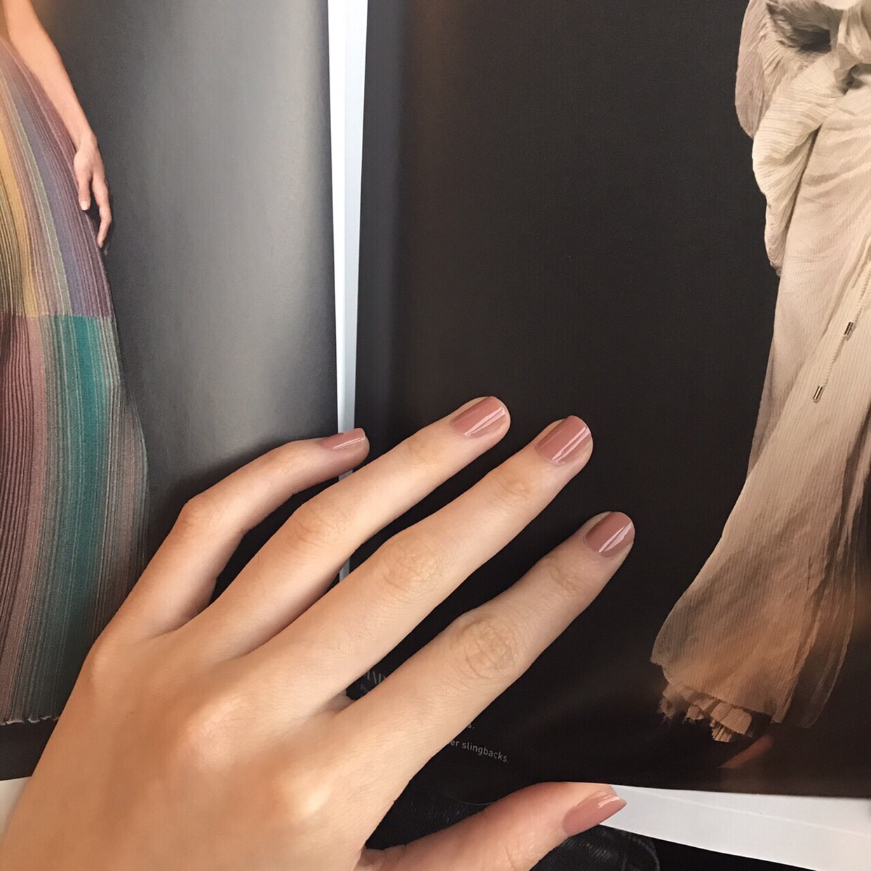一个超级显白的温柔的豆沙色,干燥玫瑰色?但是感觉一点儿也不干燥,温柔如水呢,哈哈哈。涂一层,透明清澈感,加上一层顶油,效果更好。