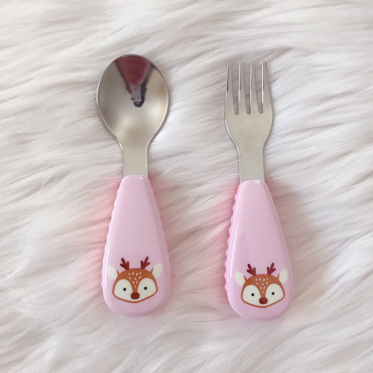 🌟Skip Hop家的设计很可爱,提供很多不同的图案选择,例如蜜蜂、甲虫、蝴蝶、班点狗等动物图案,每款设计都很可爱。 🌟叉子和勺子是不锈钢材质,把手是塑料材质,把手的旁边附有防滑橡胶,把手大小适中,很适合宝宝小手握住,勺子的设计有弧度,所以很适合喂饭和盛饭,还可以可进洗碗机清洗。 # 晒单闪现抢积分 # # 春日粉色即正义 # # 我要上精华 #