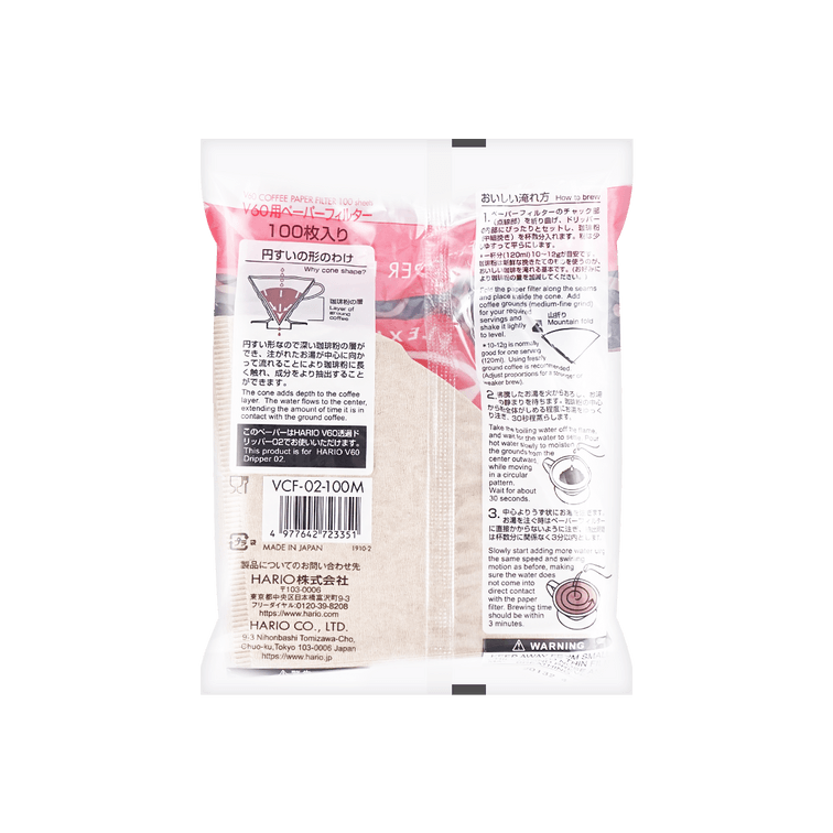 日本HARIO V60原色咖啡滤纸 02号 1~4杯用 100枚入