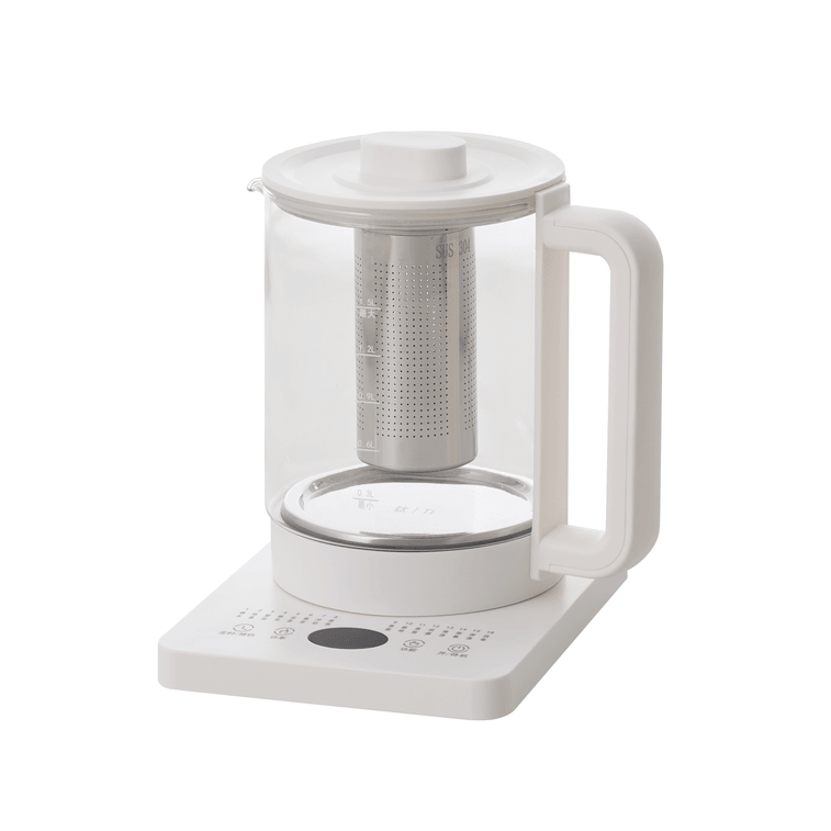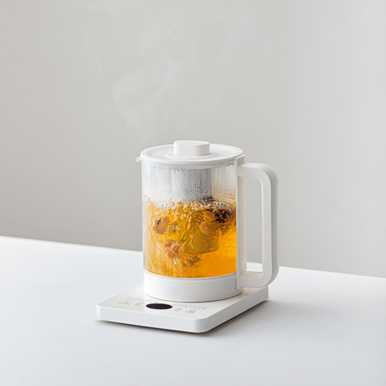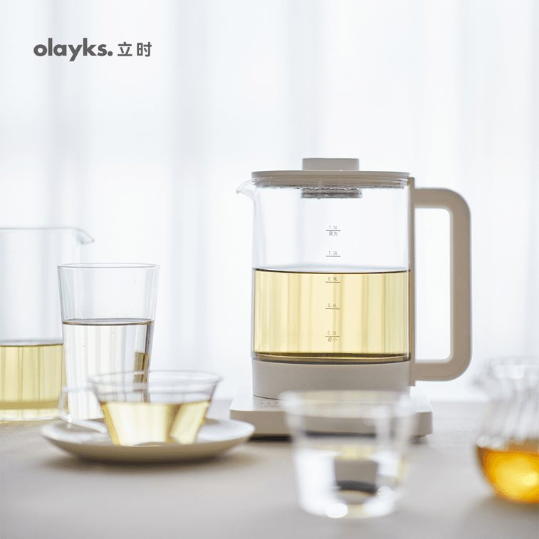 OLAYKS 宿舍/宿舍神器 养生壶 静音快煮 多功能 煮茶 花茶 炖汤 玻璃烧水壶 自动保温 梨花壶 家用便捷 1.5L 陶白色 100-220V通用 美国直接使用无需变压