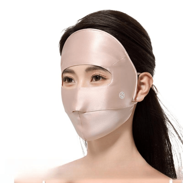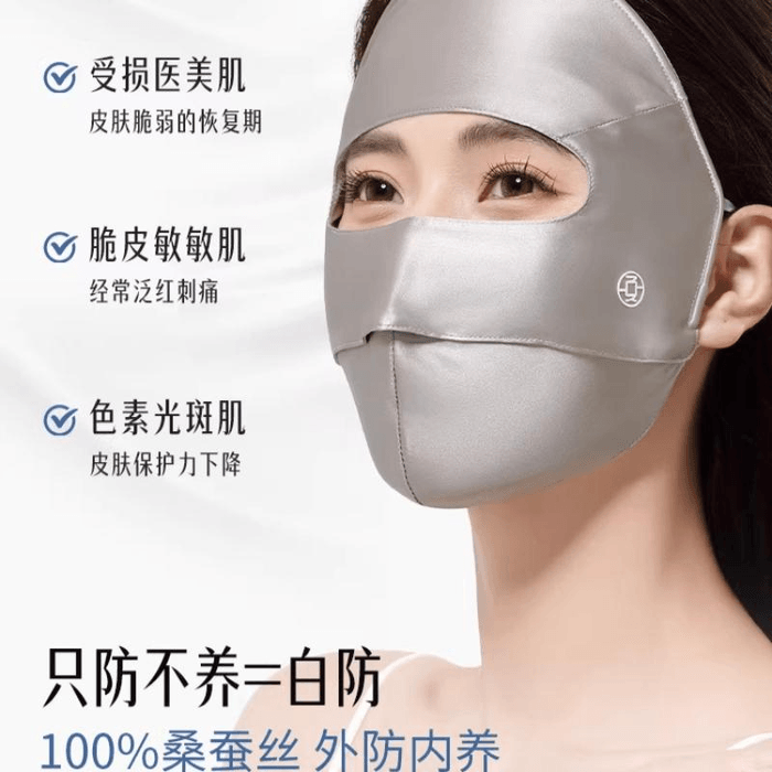 【中国直邮】 夏秦 100%真丝防晒面罩医美后全脸遮阳防紫外线 丝雾咖 均码 | 亚米