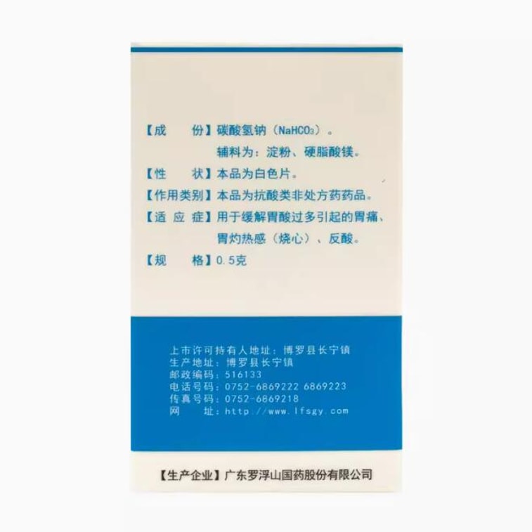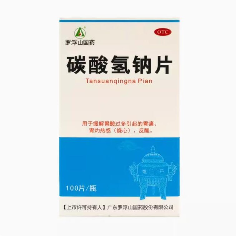 【中国直邮】罗浮山 碳酸氢钠片100片/瓶 胃酸过多 小苏打片 碱性中和胃酸药胃痛