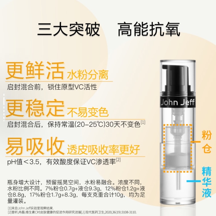 【香港直邮】 John Jeff 【12%维C精华10g✖️3支】 抗氧化去黄王者稳定VC配方提亮淡印油皮亲测清爽便携次抛保鲜