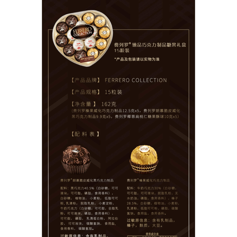 【中国直邮】 加拿大 费列罗 臻品巧克力15粒心形礼盒零食礼物送女友162g*1盒